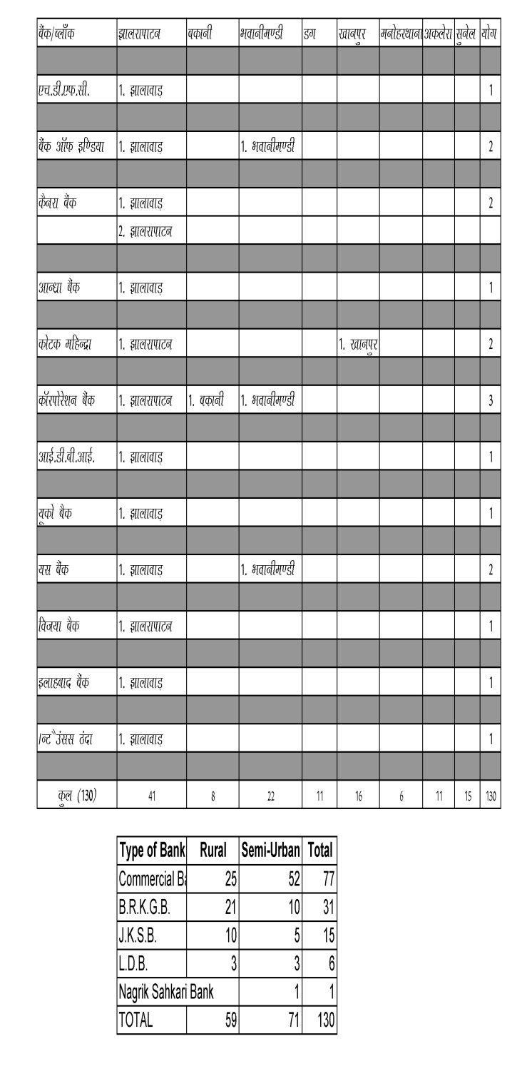 हम बैंक के माननीय अध्यक्ष एवं प्रबन्ध निदेशक के आभारी हैं जिनके मार्गदर्शन एवं निर्देशानुसार अग्रणी बैंक झालावाड़ की वेबसाईट  www.ldmjhalawar.co.in  जारी की है। इस वेबसाईट के द्वारा आमजन बैंकों की सरकारी योजनाओं की जानकारी प्राप्त कर सकते हैं। इस वेबसाईट में सभी बैंकों की तिमाही प्रगति एवं सरकारी योजनाओं की जानकारी व सभी बैंकों का सर्विस एरिया प्लान सम्मिलित है। हमें समय-समय पर सुझाव व मार्गदर्शन देकर इस वेबसाईट को और भी जनोपयोगी बनाने में सहयोग प्रदान करें।